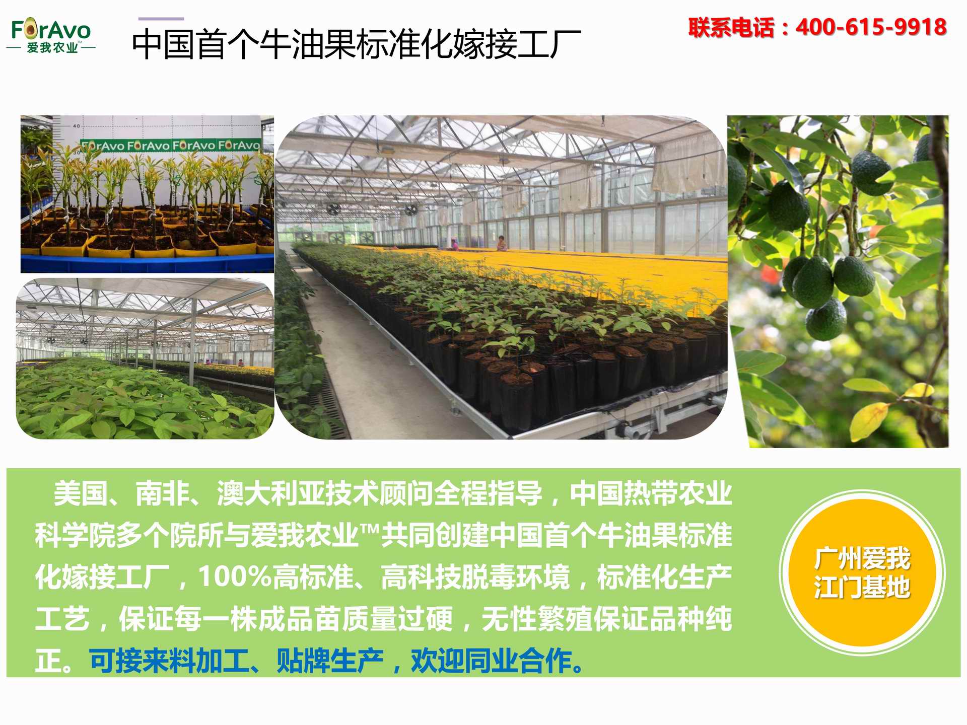 海南愛我農業科技有限公司是一家綜合性的高科技農業發展企業,旗下愛我農業TM致力于打造中國最大最強的牛油果種植企業。依托美國、南非、澳大利亞等擁有百年牛油果繁育、種植歷史以及產業鏈市場的優勢,開展牛油果種苗繁育、種植技術,種植加盟、深加工等產業。結合中國市場,面向廣大苗圃基地、種植農場、合作加工等企業,推出的適合規模化、標準化的牛油果全產業鏈服務。 Hainan Foravo Agricultural Technology Co., Ltd. is a comprehensive high-tech agricultural development enterprise , dedicated to building the largest and most powerful avocado plantation enterprise in China. Relying on the advantage of avocado nursery, planting history, and the industrial chain over 100 years in the United States, South Africa, Australia, we are carrying out nursery, planting, proce...